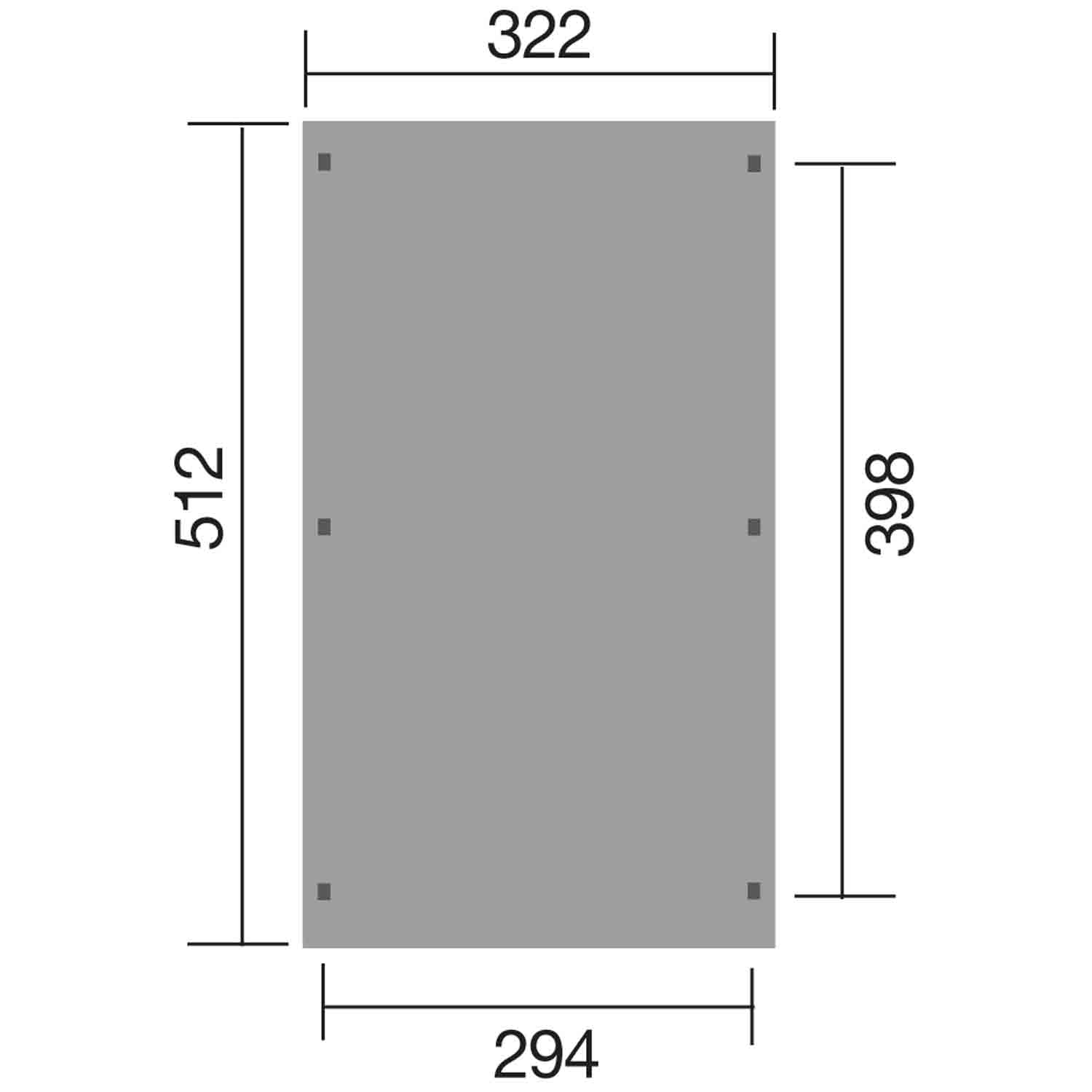 Mit einem Außenmaß von B 322 x T 512 x H 233 cm bietet es viel Platz. Die Nutzfläche vom Carport beträgt 11,70 m².