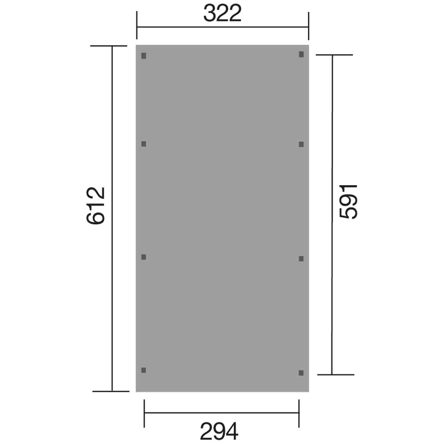 Mit einem Außenmaß von B 322 x T 612 x H 233 cm bietet es viel Platz. Die Nutzfläche vom Carport beträgt 17,38 m².