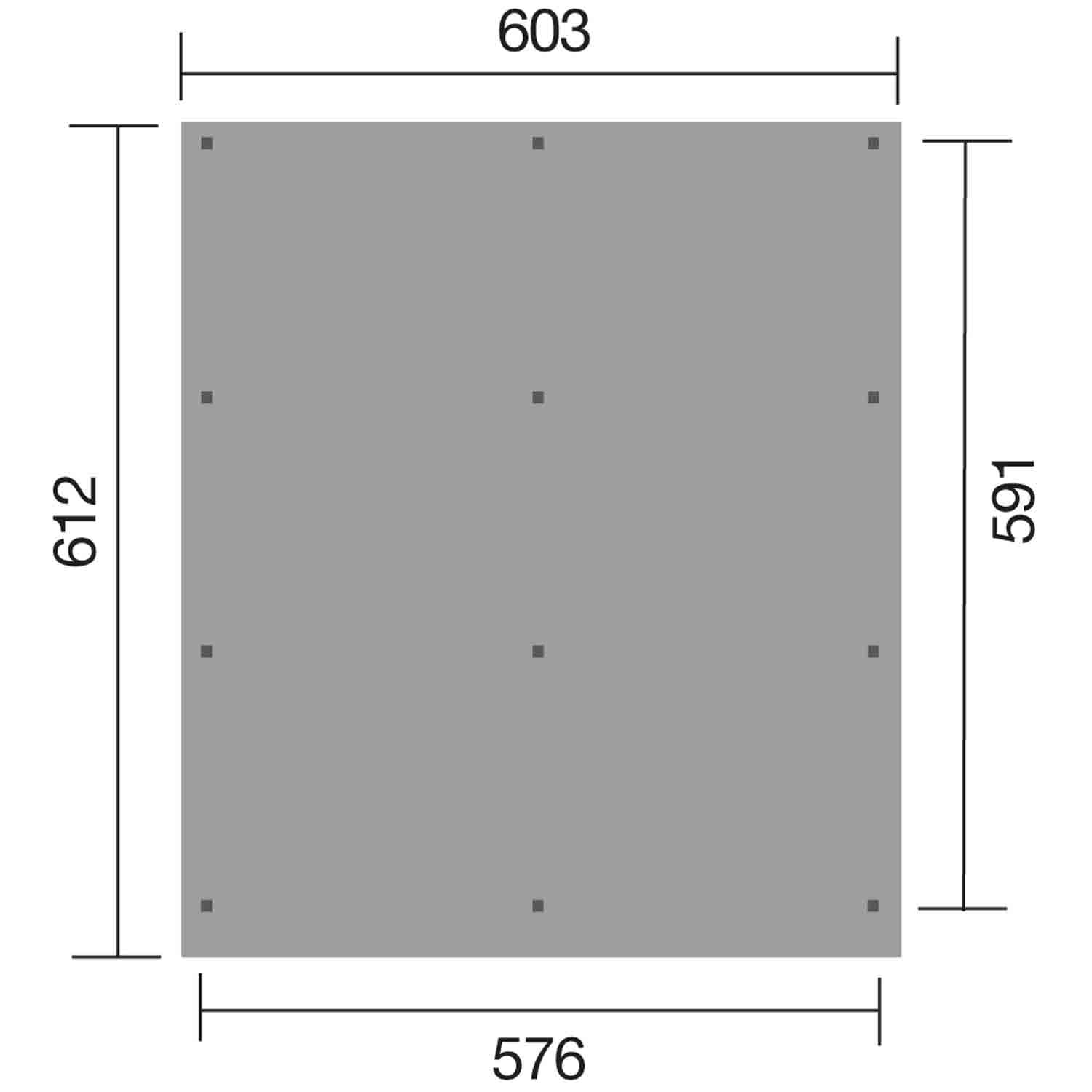 Mit einem Außenmaß von B 603 x T 612 x H 229 cm bietet es viel Platz. Die Nutzfläche vom Carport beträgt 34,04 m².