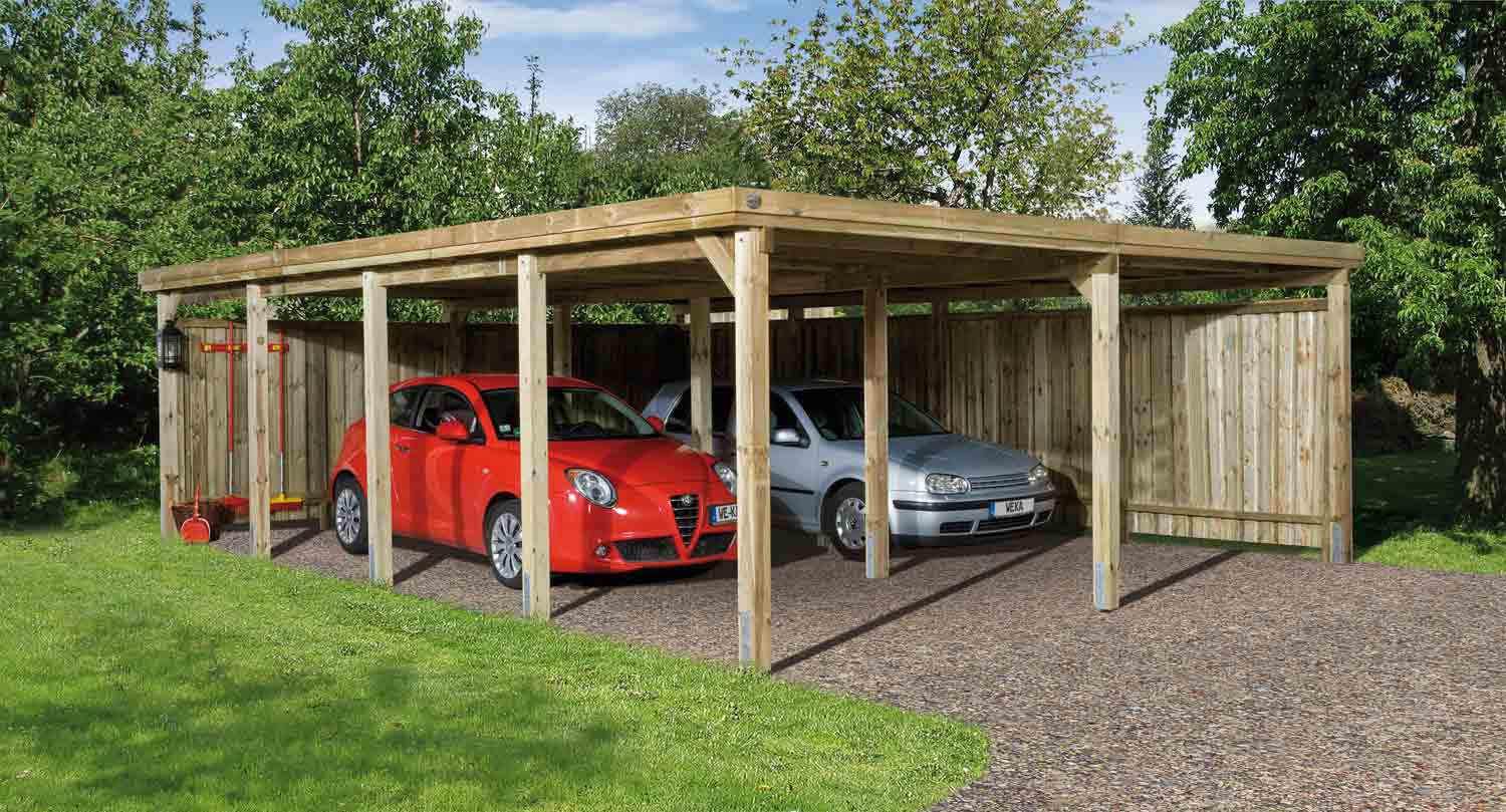 Weka Flachdach-Doppelcarport 618 Gr. 3 | mit Trapezblech