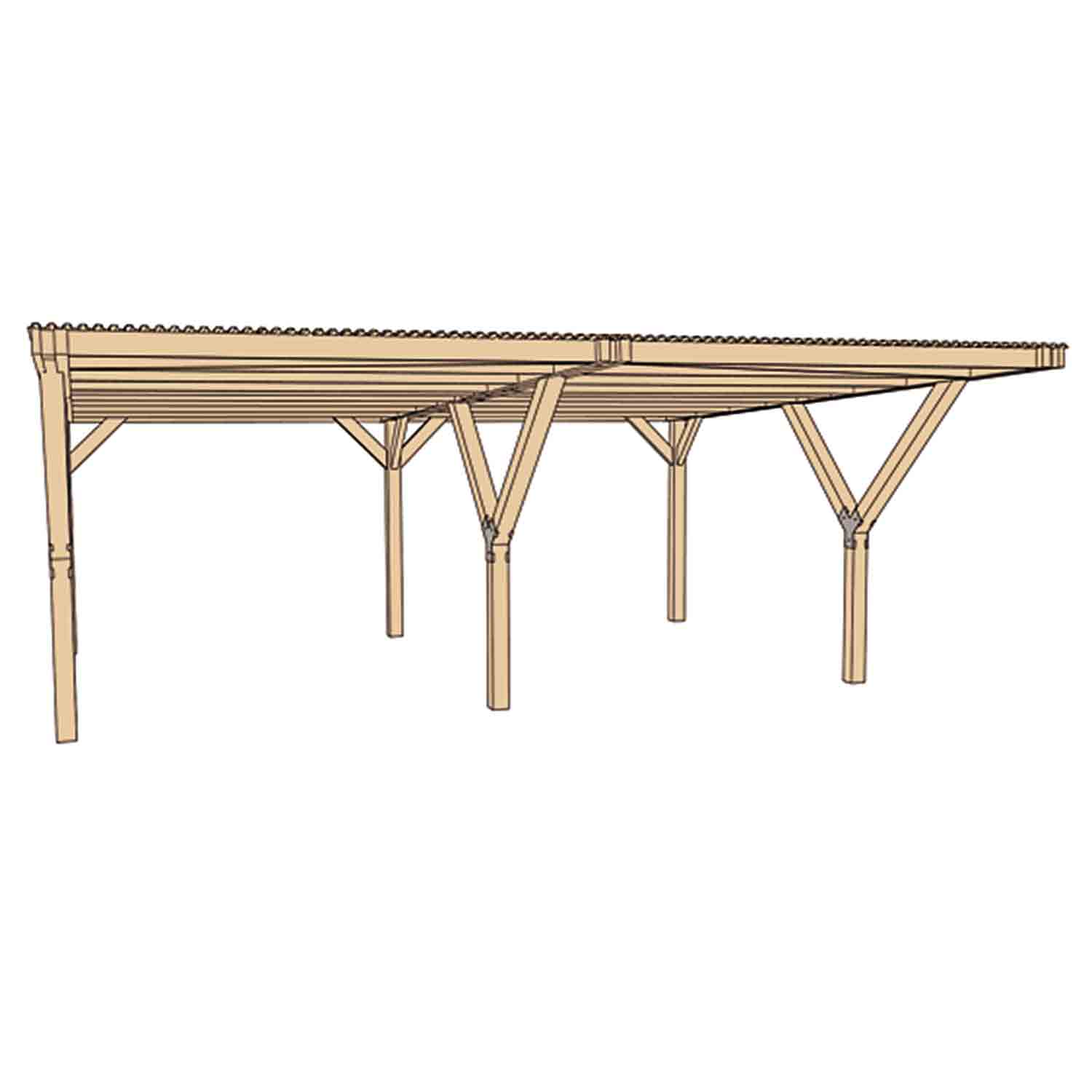 Der Carport wurde aus europäischer Kiefer und mit starken Pfosten gefertigt.