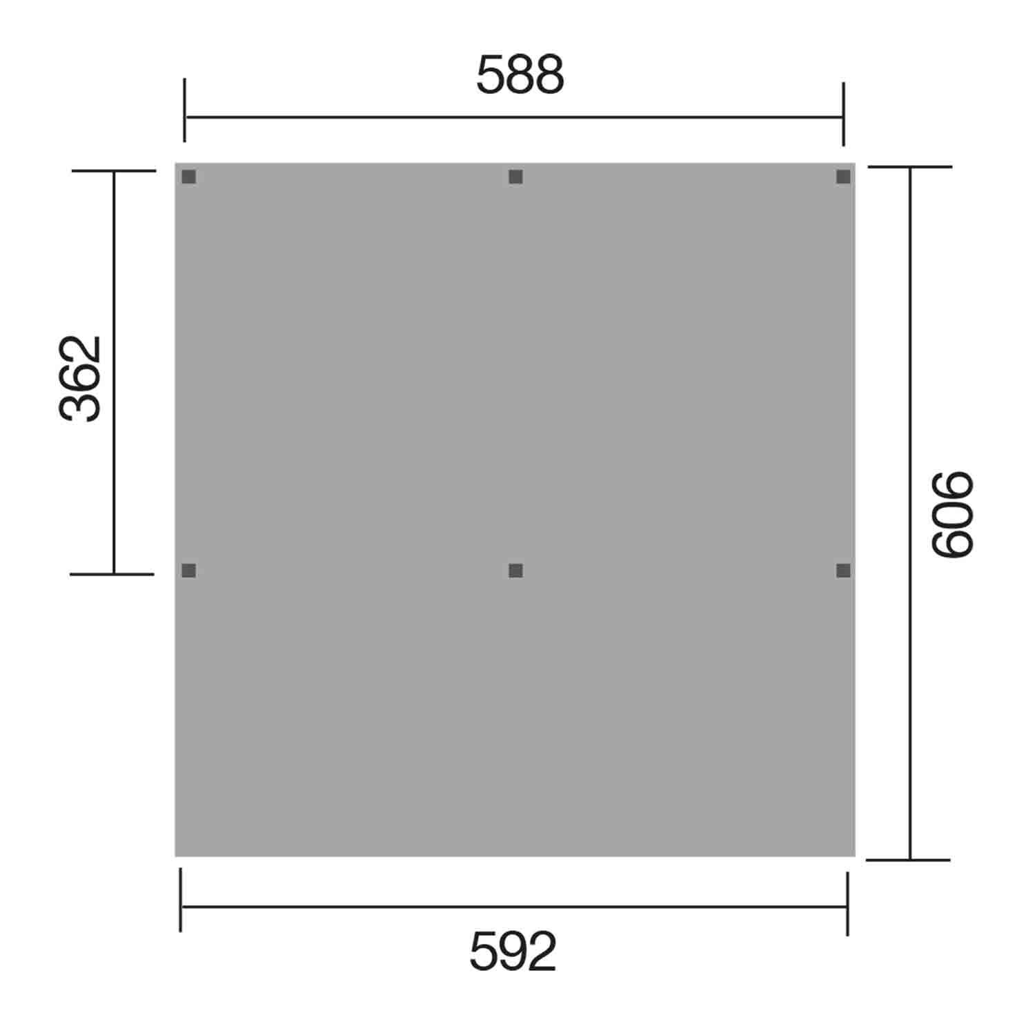 • Außenmaß in cm: B 592 x T 606 x H 250