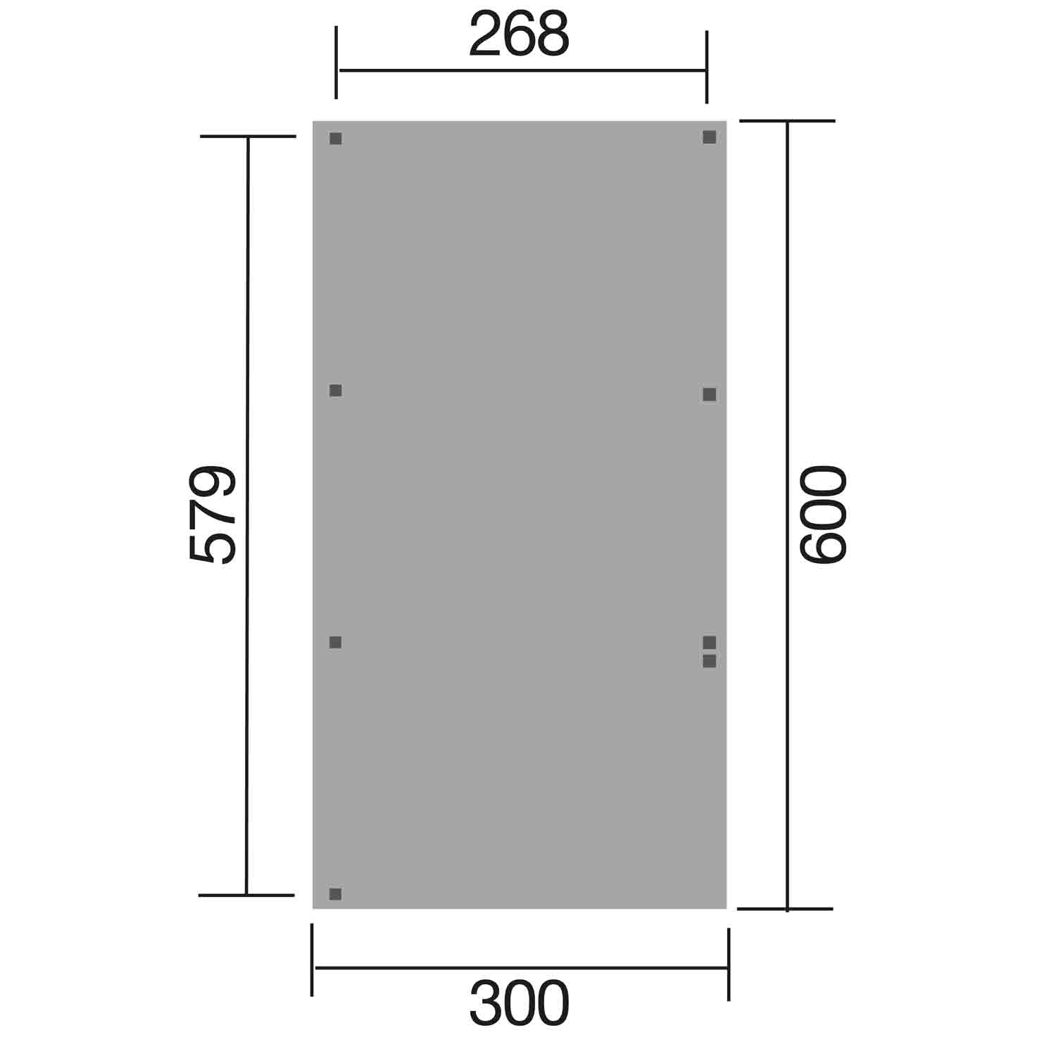 Mit einem Außenmaß von B 300 x T 600 x H 229 cm bietet es viel Platz. Die Nutzfläche vom Carport beträgt 13,43 m².