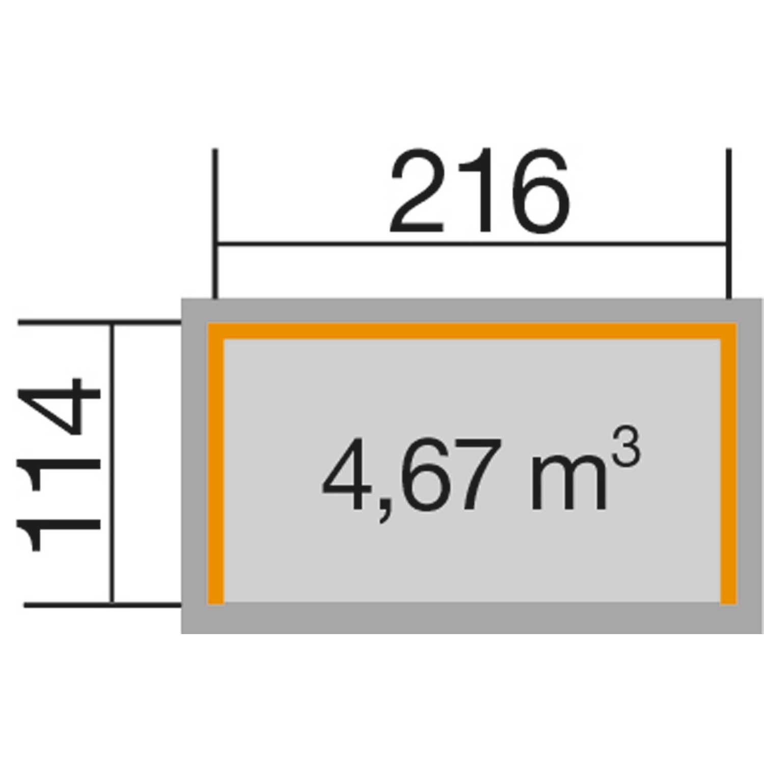 19 mm Glattkantbretter 19 mm Massivholz-Pultdach 4,5 m³ Lagerplatz Außenmaß in cm: B 260 x T 130 x H 204 Sockelmaß in cm: B 216 x T 114 Höhe Seitenwand: 180 cm Produktinformation...