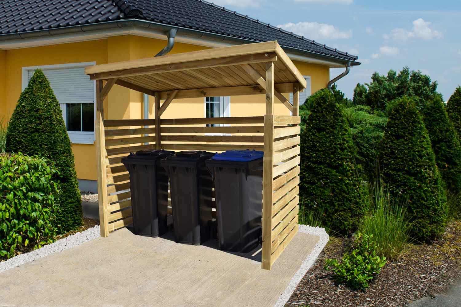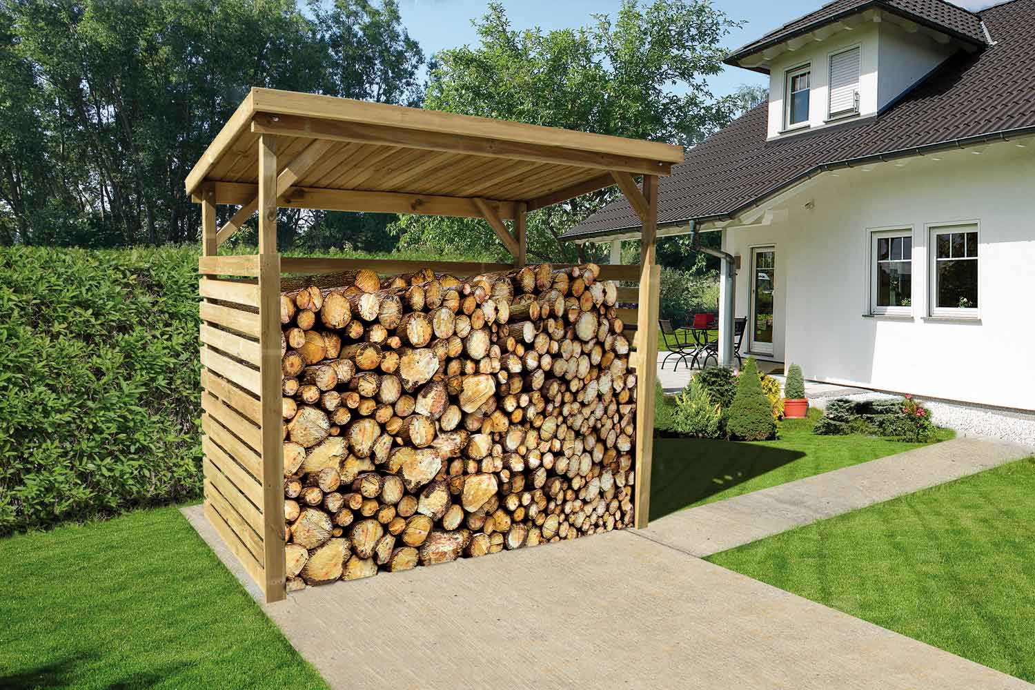 Holen Sie sich das perfekte Zwischenlager für Ihre Brennholzvorräte nach Hause oder nutzen Sie den Platz als Unterstand für Ihre Mülltonnen oder Fahrräder.