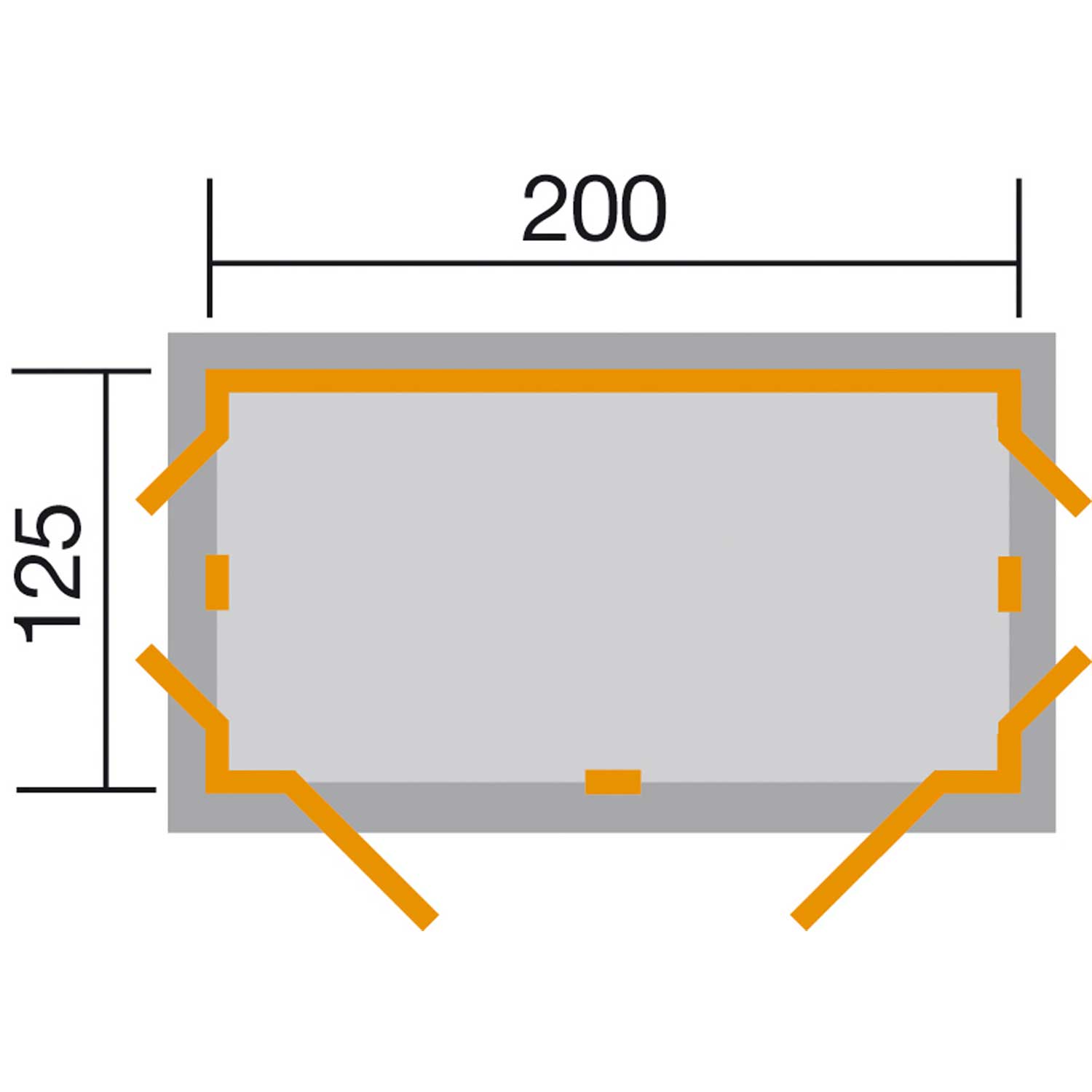 Wandstärke: 14 mm Material: europäische Fichte Dachform: Flachdach Dachstärke: 18 mm inkl. 18 mm starken OSB-Platten Boden inkl. 6 Einzeltüren Farbe: anthrazit Umbauter Raum: 5,04...