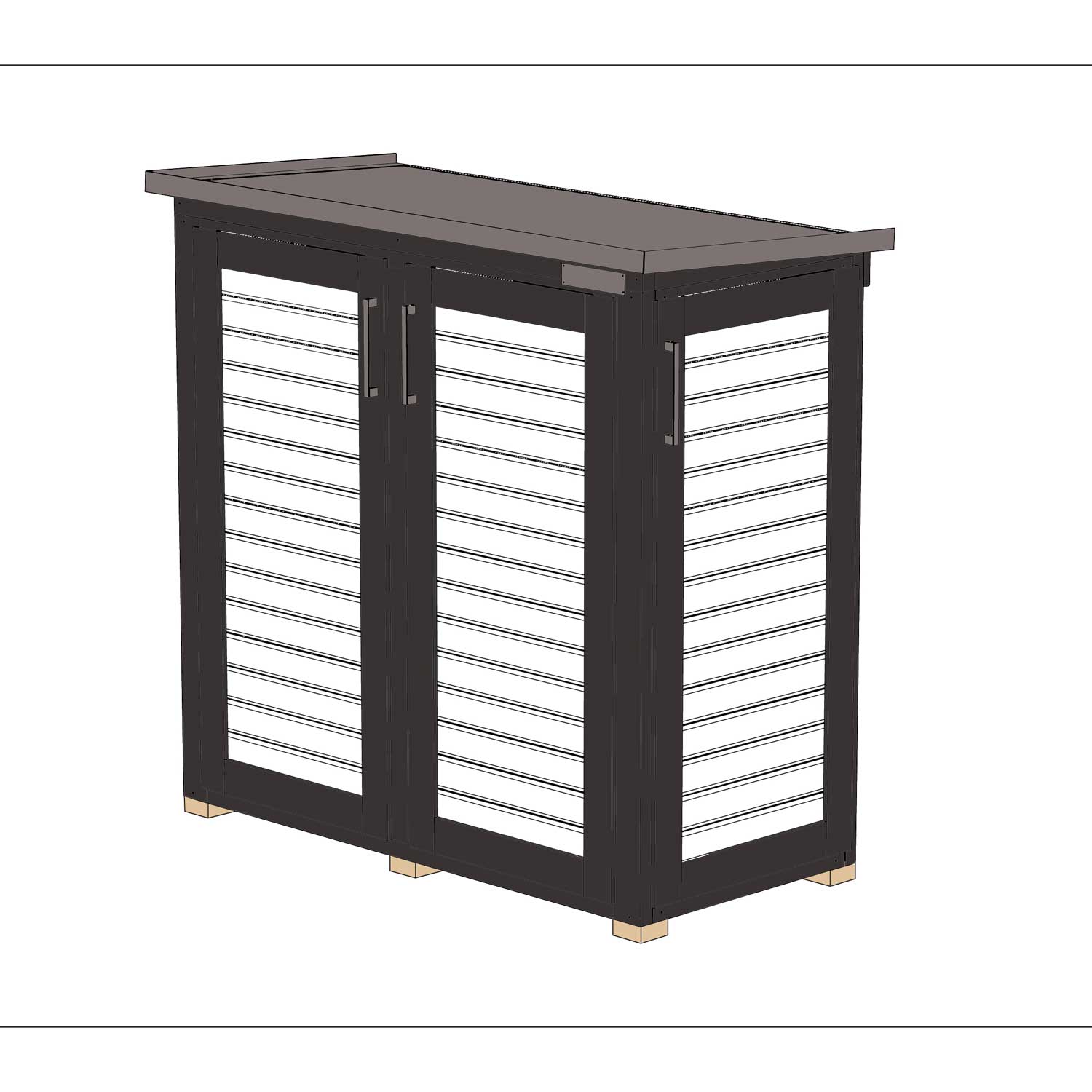 Das Flachdach besteht aus OSB-Platten, sodass der Geräteschrank rasch gegen von oben kommenden Witterungseinflüssen geschützt ist.