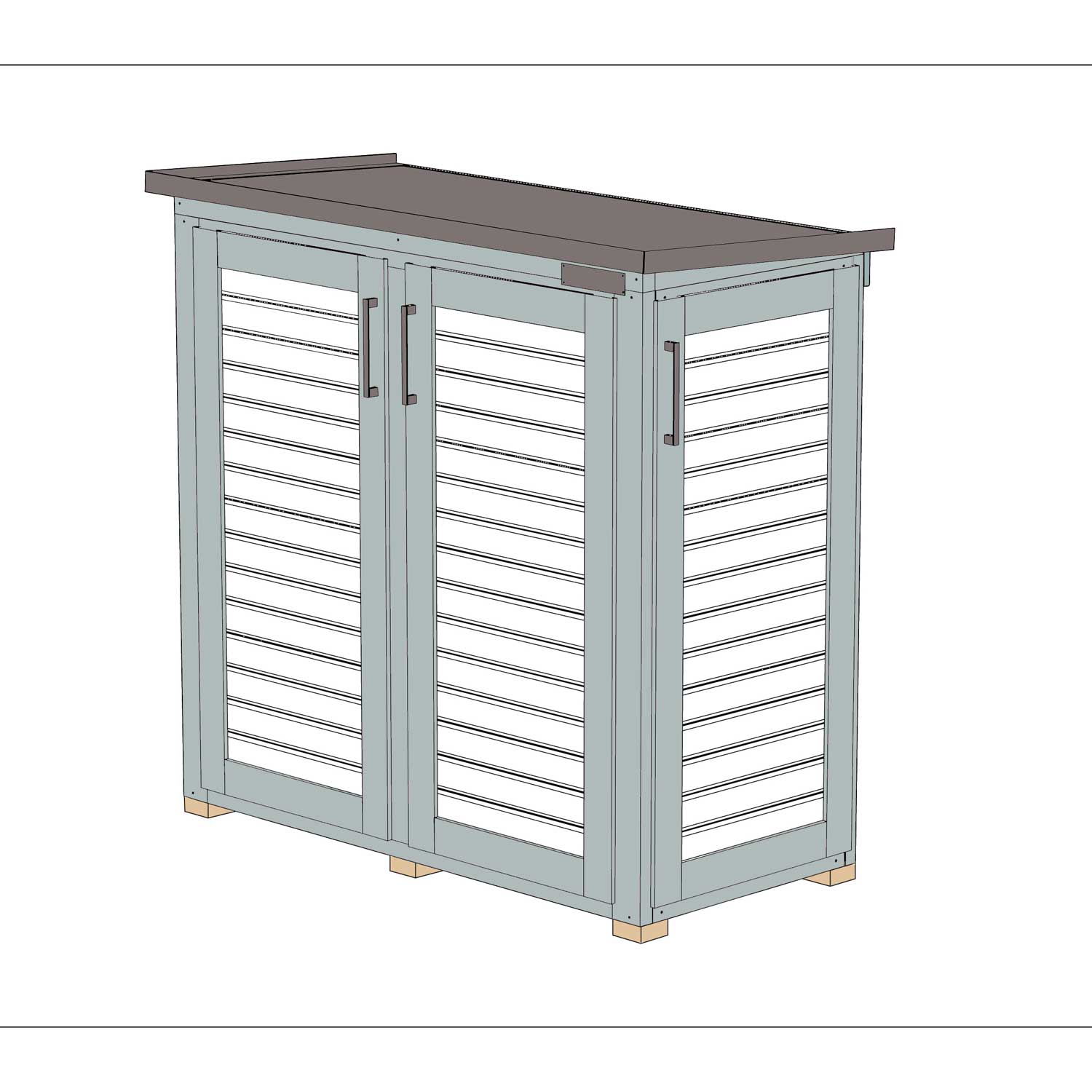 Das Flachdach besteht aus OSB-Platten, sodass der Geräteschrank rasch gegen von oben kommenden Witterungseinflüssen geschützt ist.