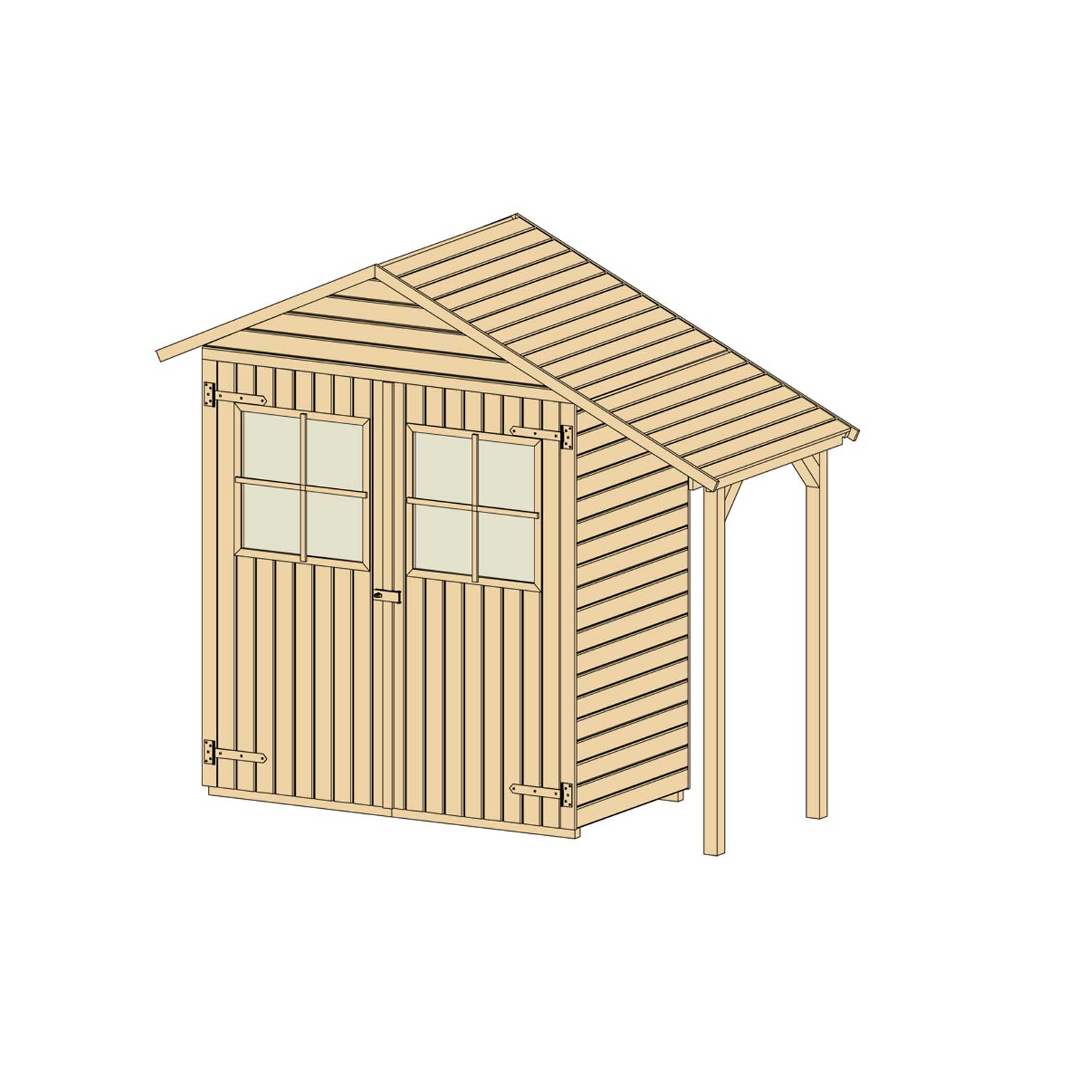 Wandstärke: 14 mm Material: europäische Fichte Bauweise: Elementbauweise Dachform: Satteldach inkl. 19 mm starken Massivholzboden inkl. Doppeltür Farbe: naturbelassen...