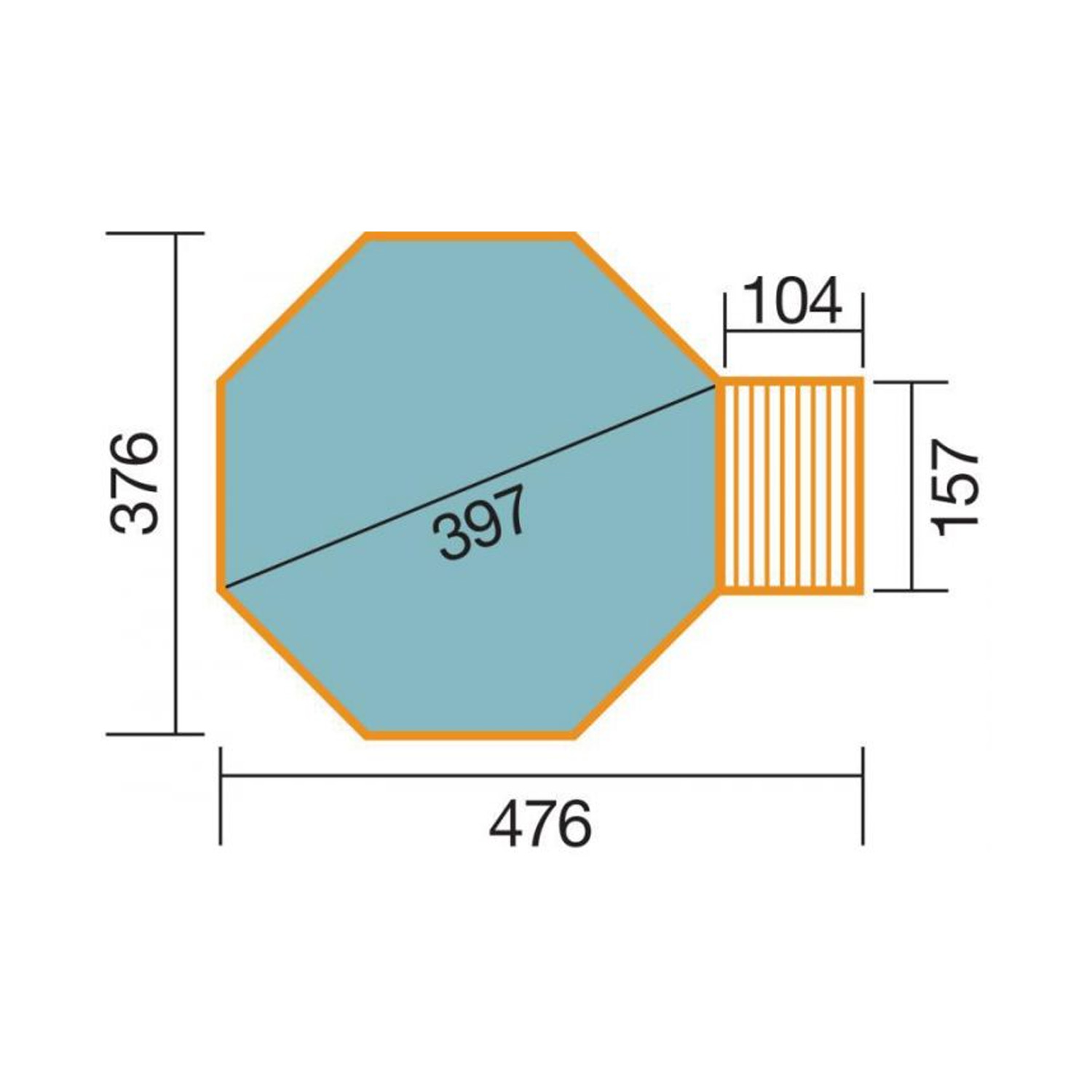 • Außenmaß in cm: B 476 x T 376 x H 116