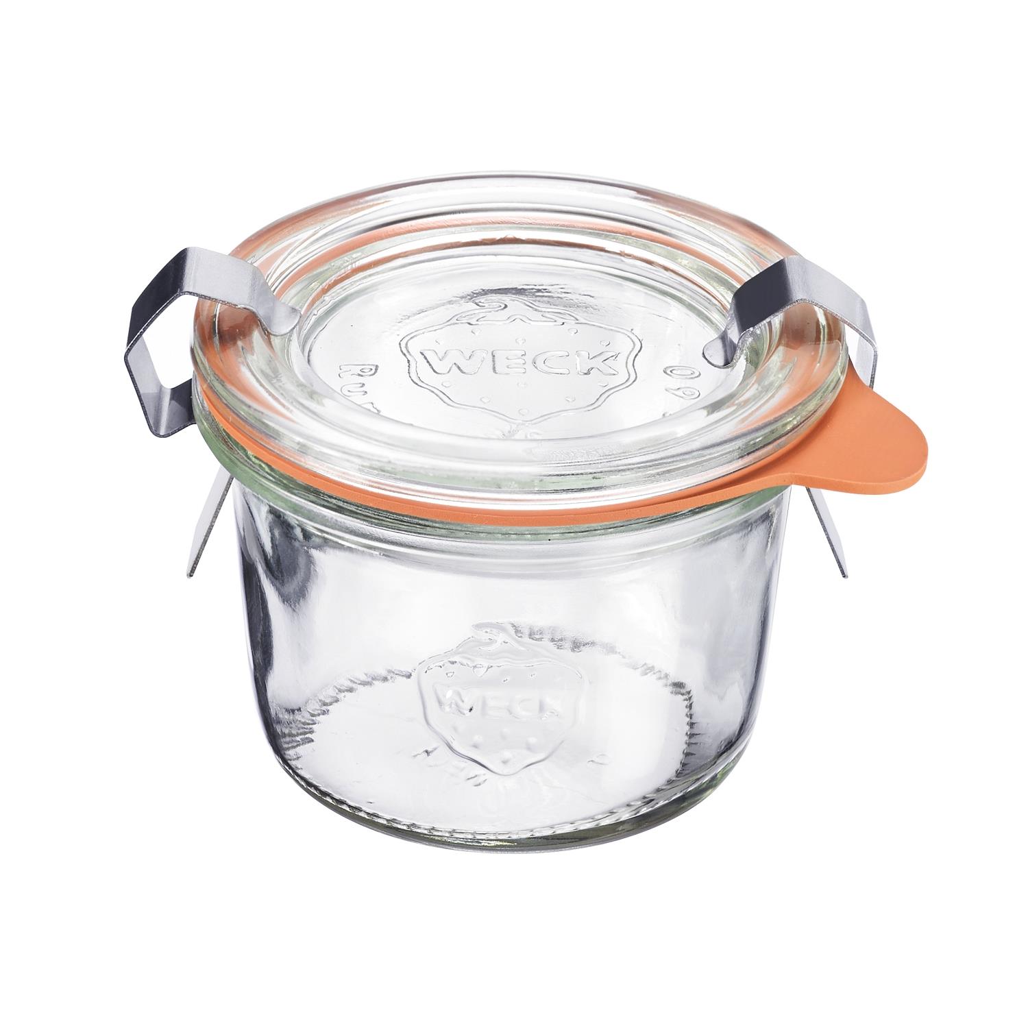 6 Gläser Weck 80ml 60mm mit Glasdeckel mit 12 Deckelklammern und 6 GummiringenStahl, GLAS